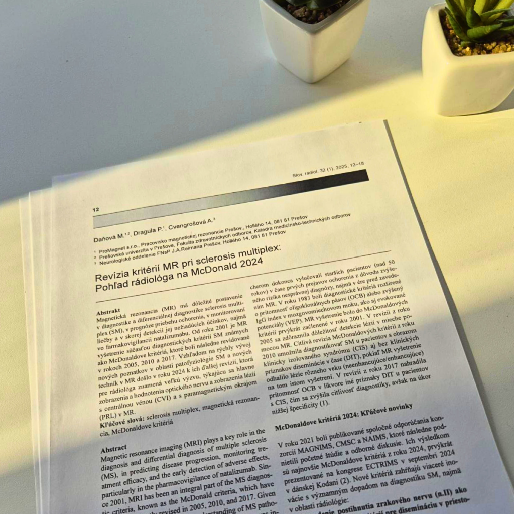 V časopise Slovenská rádiológia vyšiel odborný článok MUDr. Moniky Daňovej, PhD., vedúcej lekárky Pro Magnet Prešov.